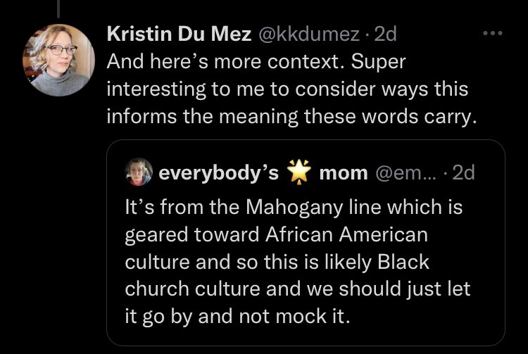 Kristin Du Mez got her followers to mock a greeting card she thought was a perfect example of toxically masculine white evangelical culture only to find out it was a piece of black church culture 🤡
