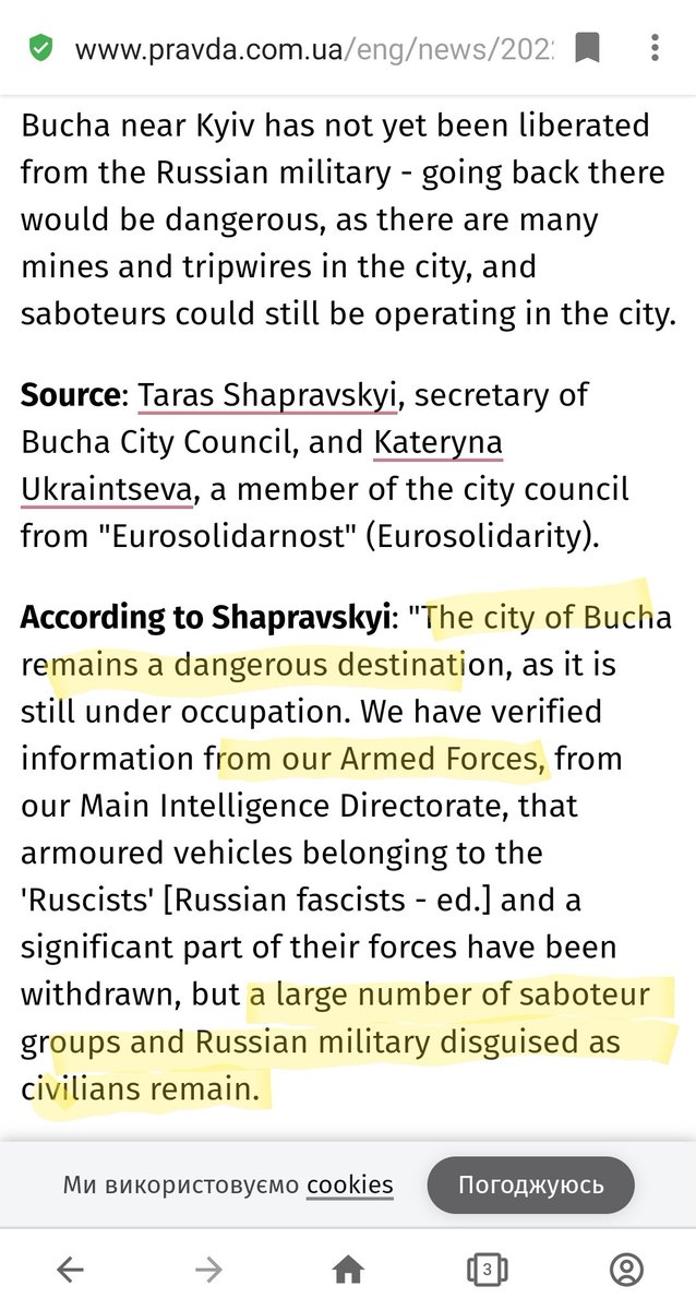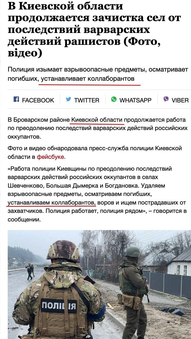 On 2nd of April both police and military officials reported ongoing purge by special forces against Russian collaborators and saboteurs disguised in Civilian clothes in Bucha.