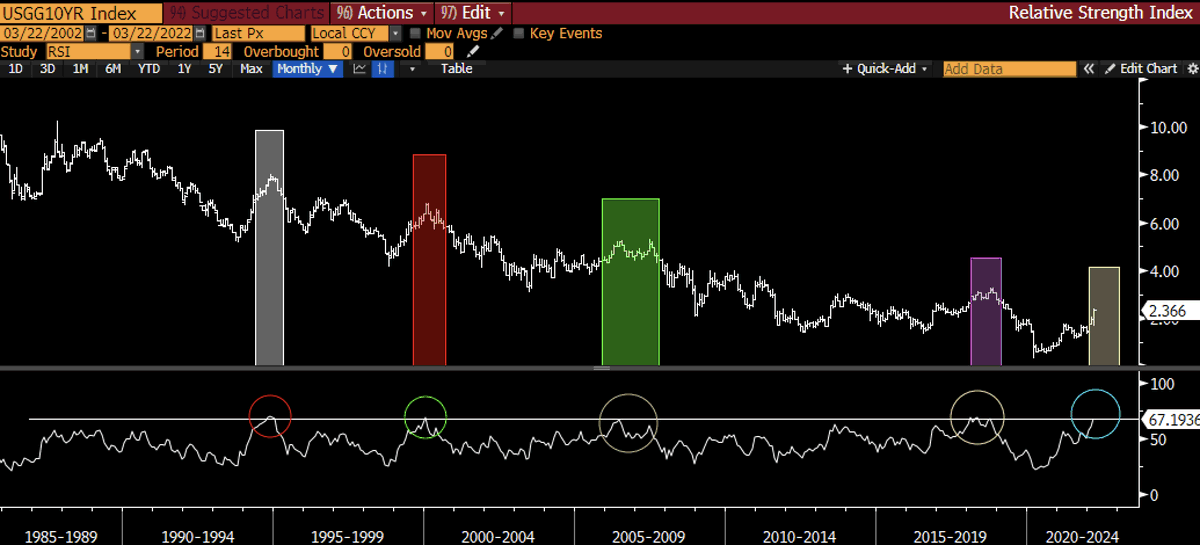 Almost everyone now believes inflation is unanchored on a secular basis and the Chart of Truth will fail and the previous cycle high in rates will get taken out for the first time in 35+ years…