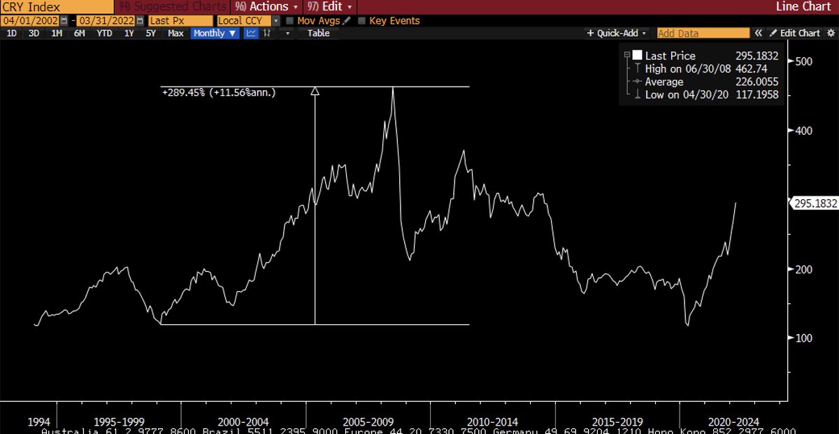 I note that the biggest commodity demand shock the world has ever seen was the building of China. The largest ever demand for commodities. This was offset by cheap goods. Outcome was 2.8% averaged inflation from 2000 to 2008 (falling to 2% post-China boom). 2/