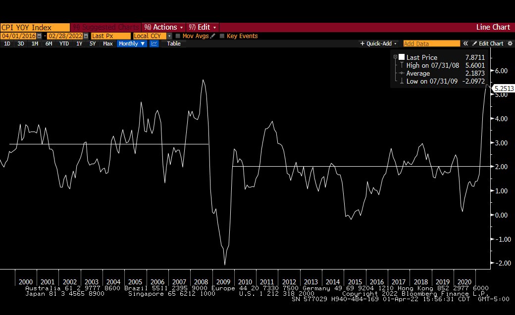 Same sentiment for commodity inflation with lots of expectations of $150 oil, food shortages, etc