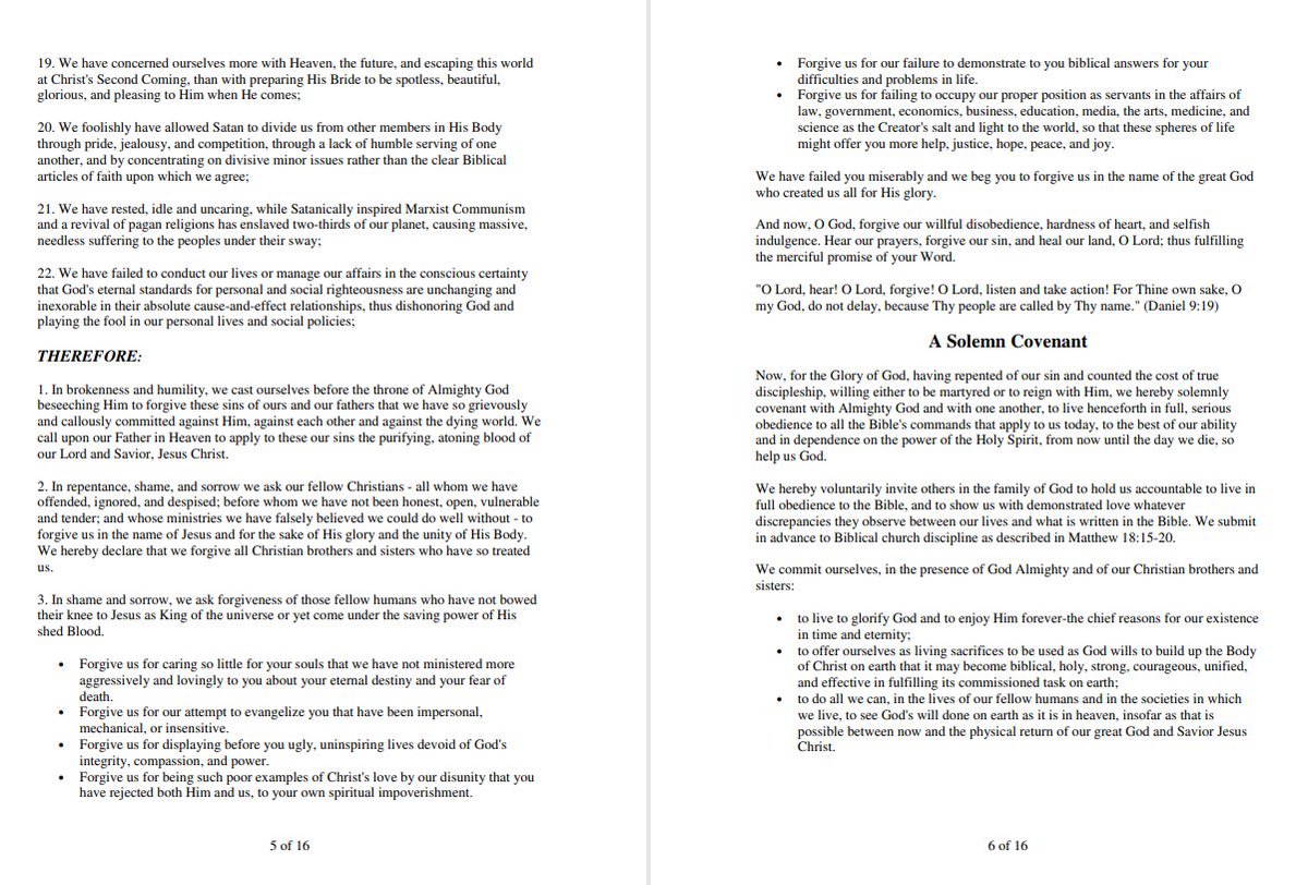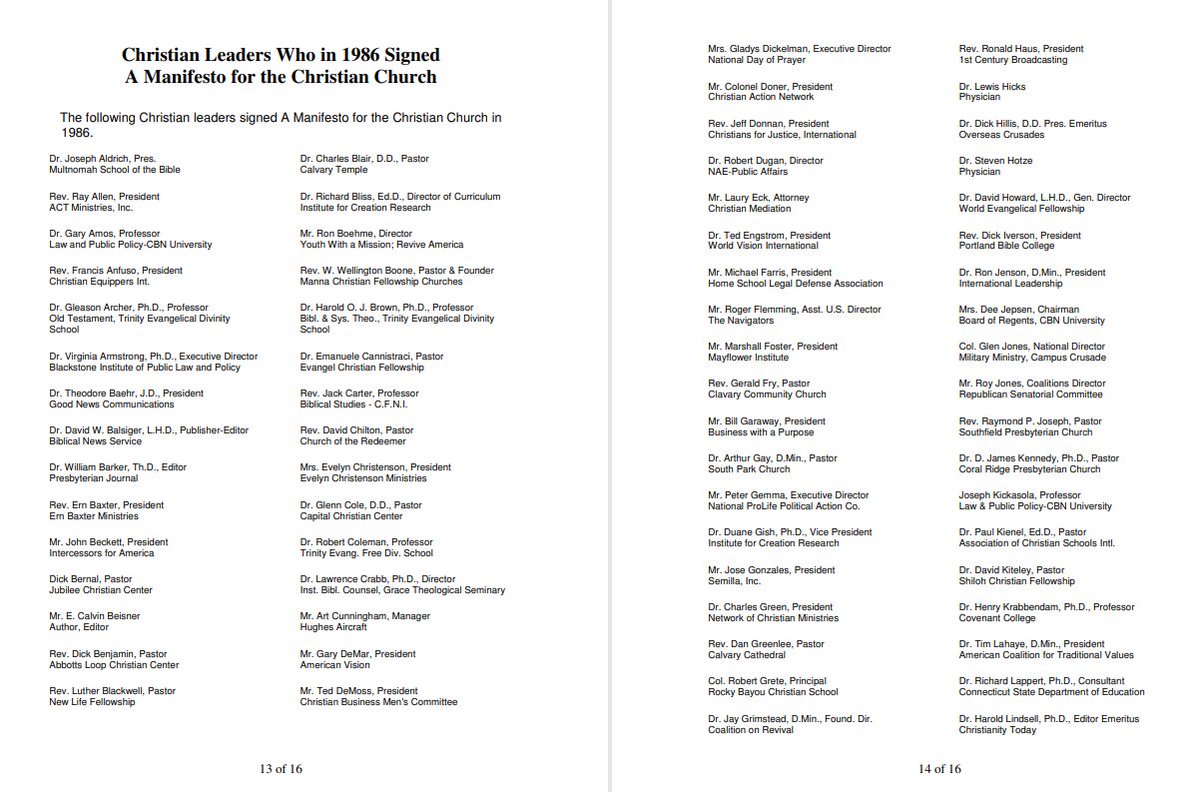 On July 4, 1986 at the Lincoln Memorial in DC, during a 3-day Coalition on Revival Congress on the Christian Worldview, 60-COR's Steering Committee & 400 Christian leaders signed a Manifesto for the Christian Church.