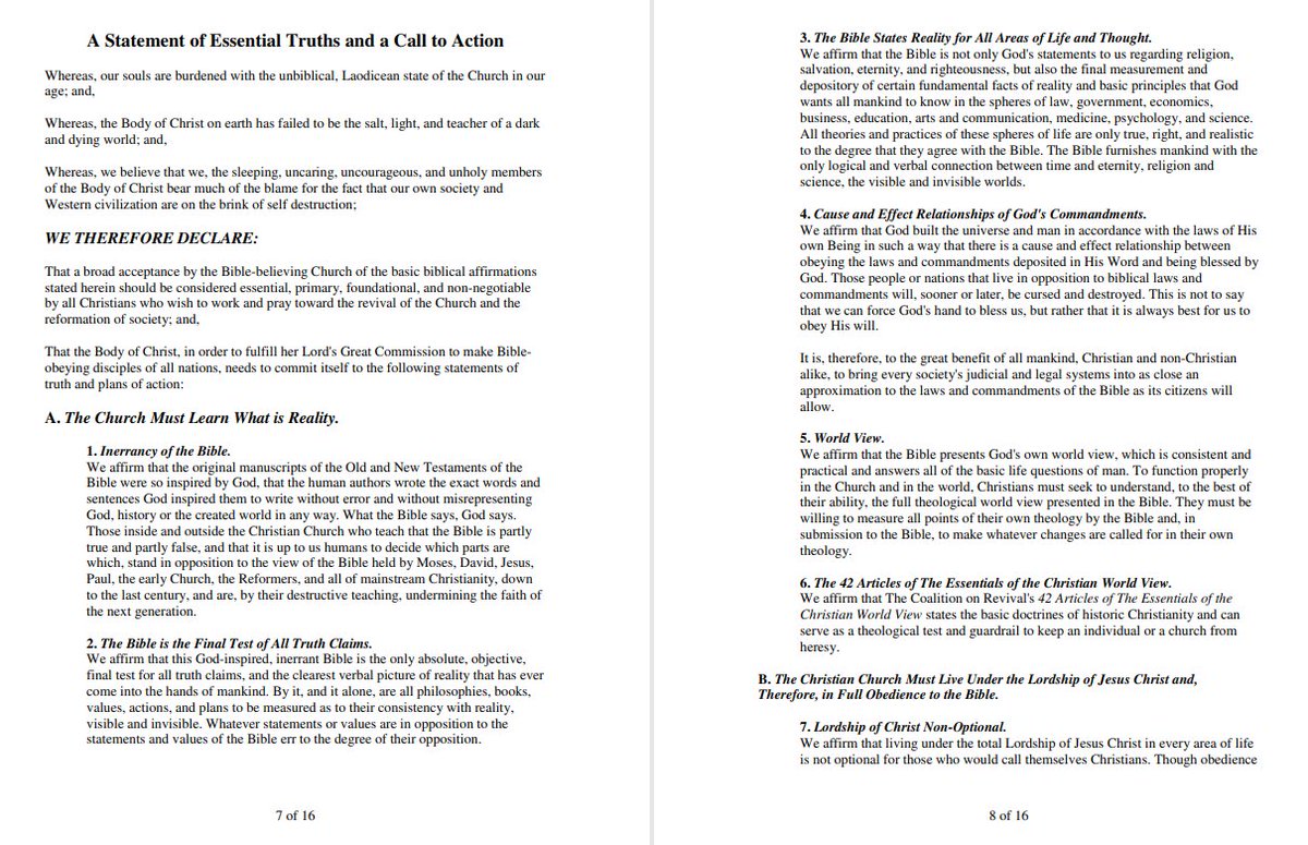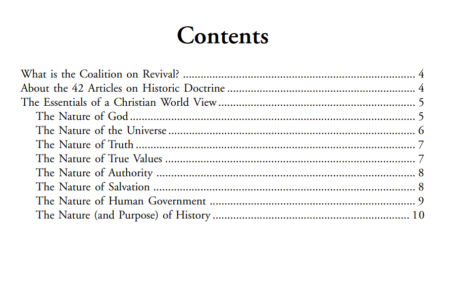 Articles of Affirmation & Denial & Foundational Theology of The Coalition on Revival