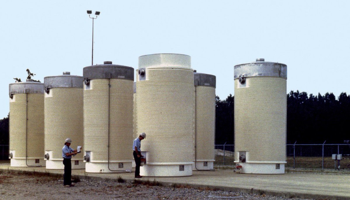 While powering a nuclear reactor, the fuel rods become very hot. We’re talking 1k°C (1832°F), so this pool of crystal clear water is meant to cool spent fuel rods after they come out of a nuclear reactor.