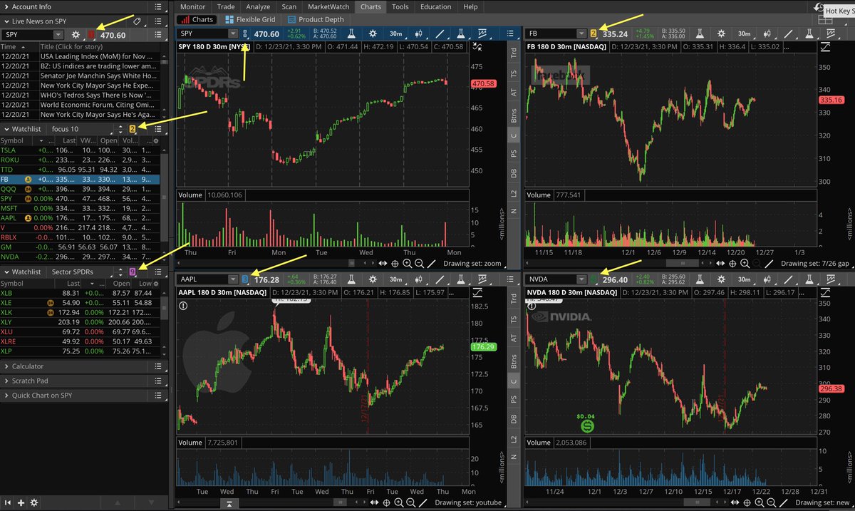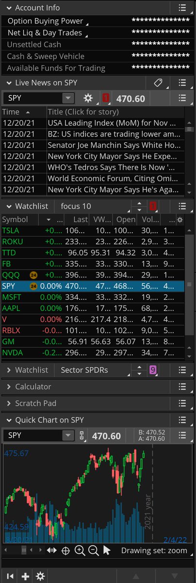TOS has a sidebar that you can arrange however you’d like - conveniently placing your watchlists, buying power information, and live news just a glance away.