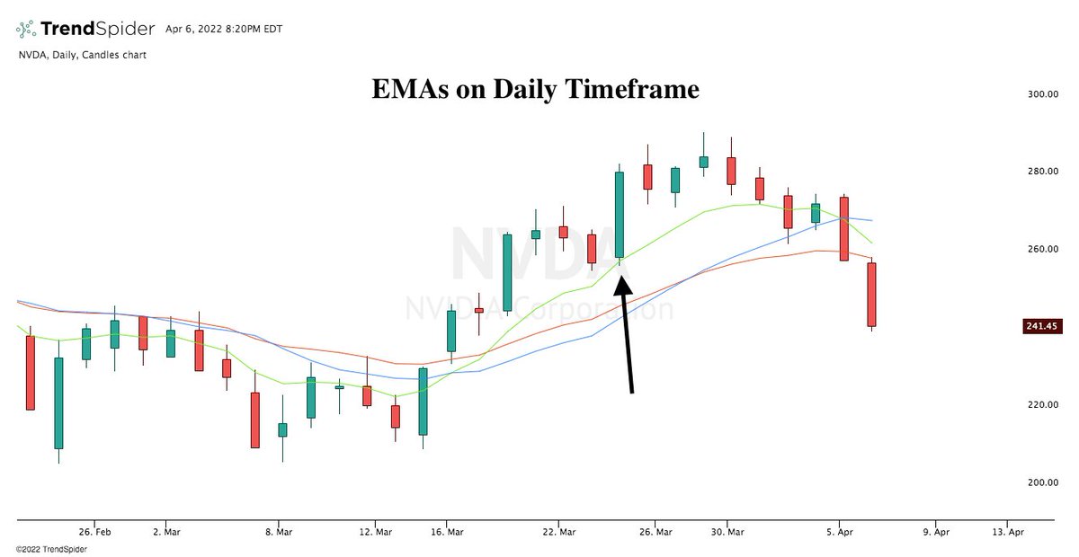 I use ema’s in conjunction with general market themes, fib levels, options flow, and other key levels to identify high probability trades with good risk:reward.