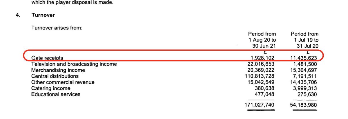 Broadcast income lower than would expect for a club finishing 9th but many other clubs have 44 PL matches included in their figures in the period 1 July 2020 to 30 June 2021 due to covid lockdown.