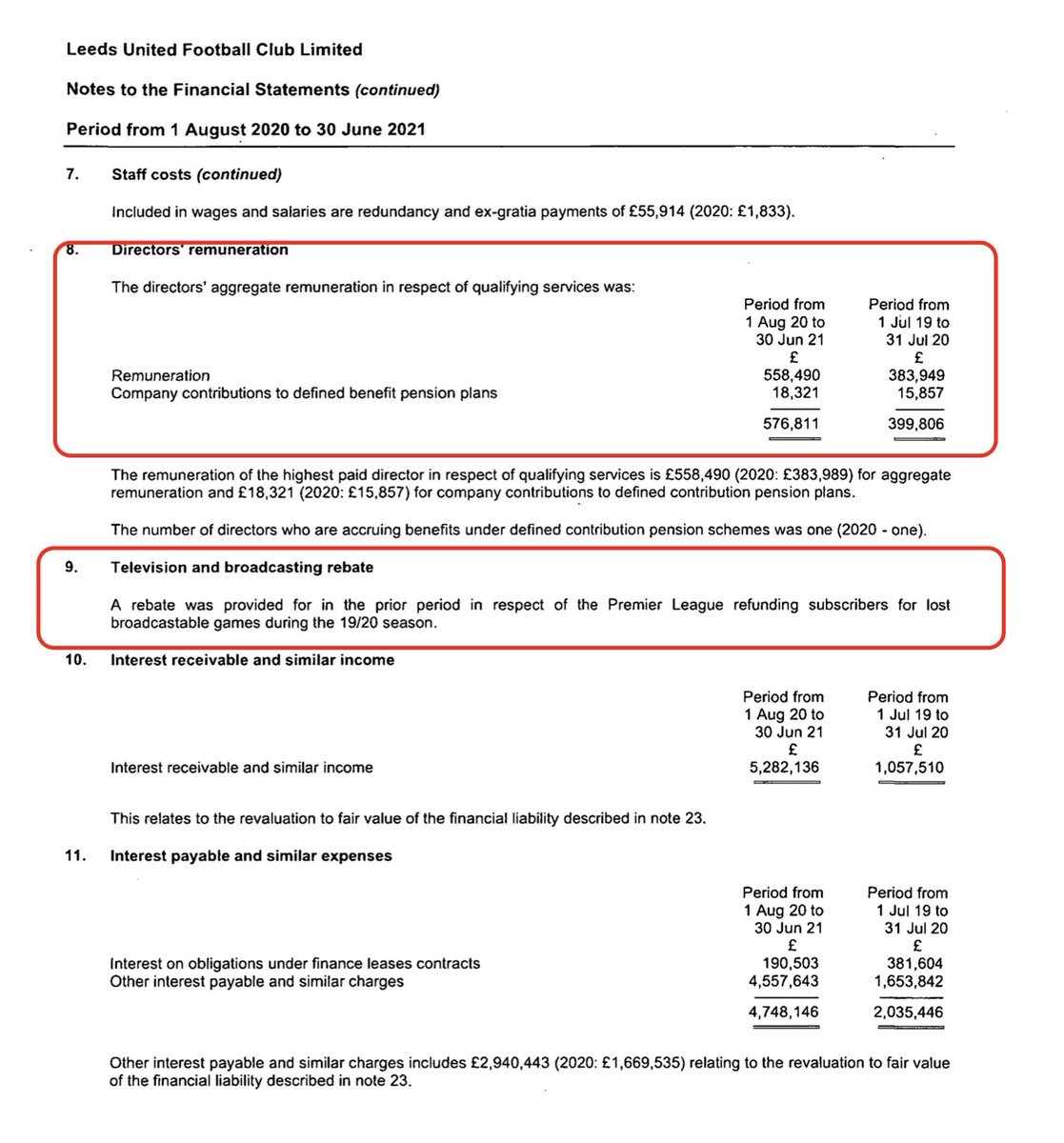 Leeds accounts for 11 months to 30 June 2021 (13 months in 2020) show an operating profit of £5m. Loan interest of £21m was waived resulting in profit before tax of £26m #LUFC