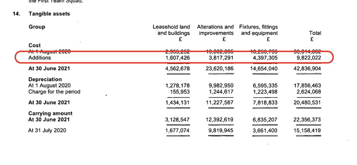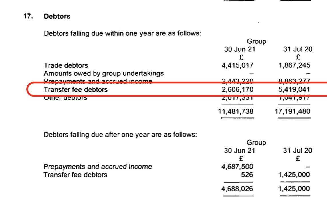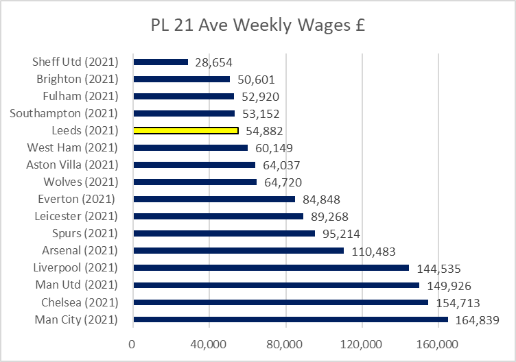 Amortisation (transfer fees over contract) up to £37m. Club had govt grants of over £1m, unclear if these are furlough monies or not. COVID costs estimated at £23m. Wages £108m for 11m compares to £78m for 13m. Ave weekly wage £55k a week