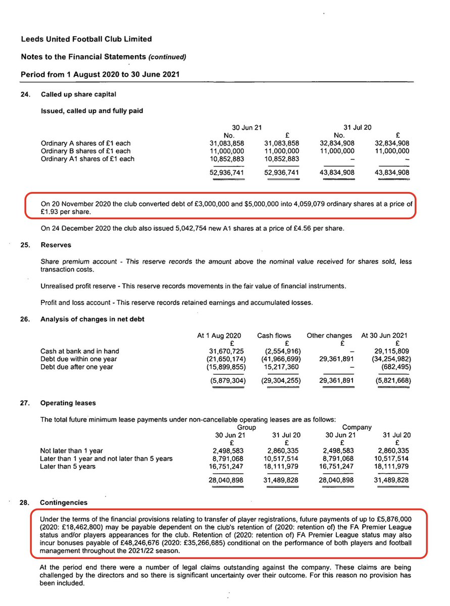 Leeds converted loans into shares during 2020/21. Bonuses of £35m payable when avoided relegation in that season and will be £48m if avoid relegation this season