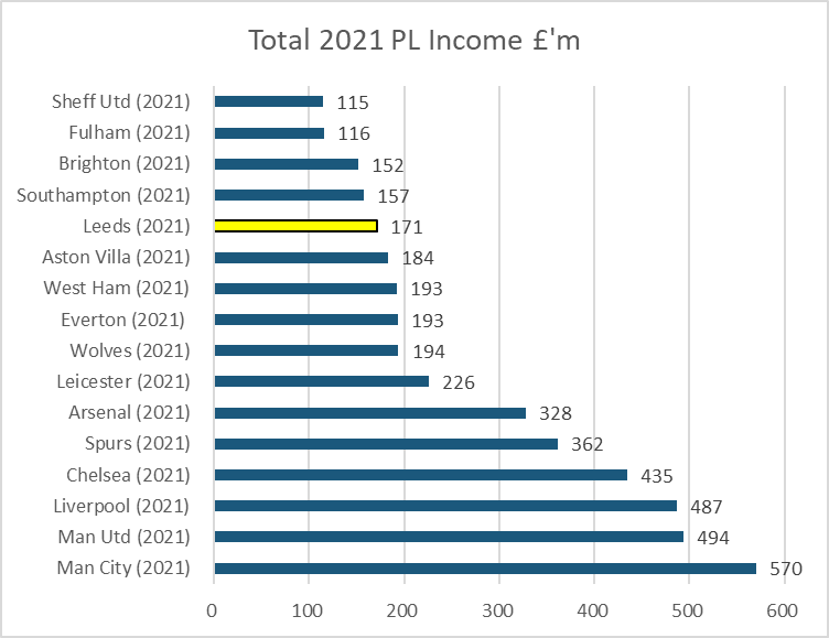 Leeds income in 1st season back in PL puts it between Villa and Southampton, although remember Leeds accounts only cover 11 months.