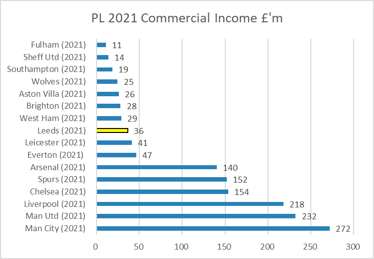 Leeds commercial income for 11 months already puts it half way up Premier League totals despite only one Covid impacted season in the division.