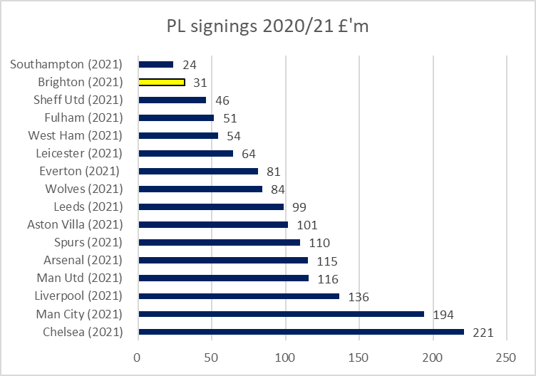 Leeds bought players (some on instalments) for £99m in 2020/21 and had sales of less than £2m