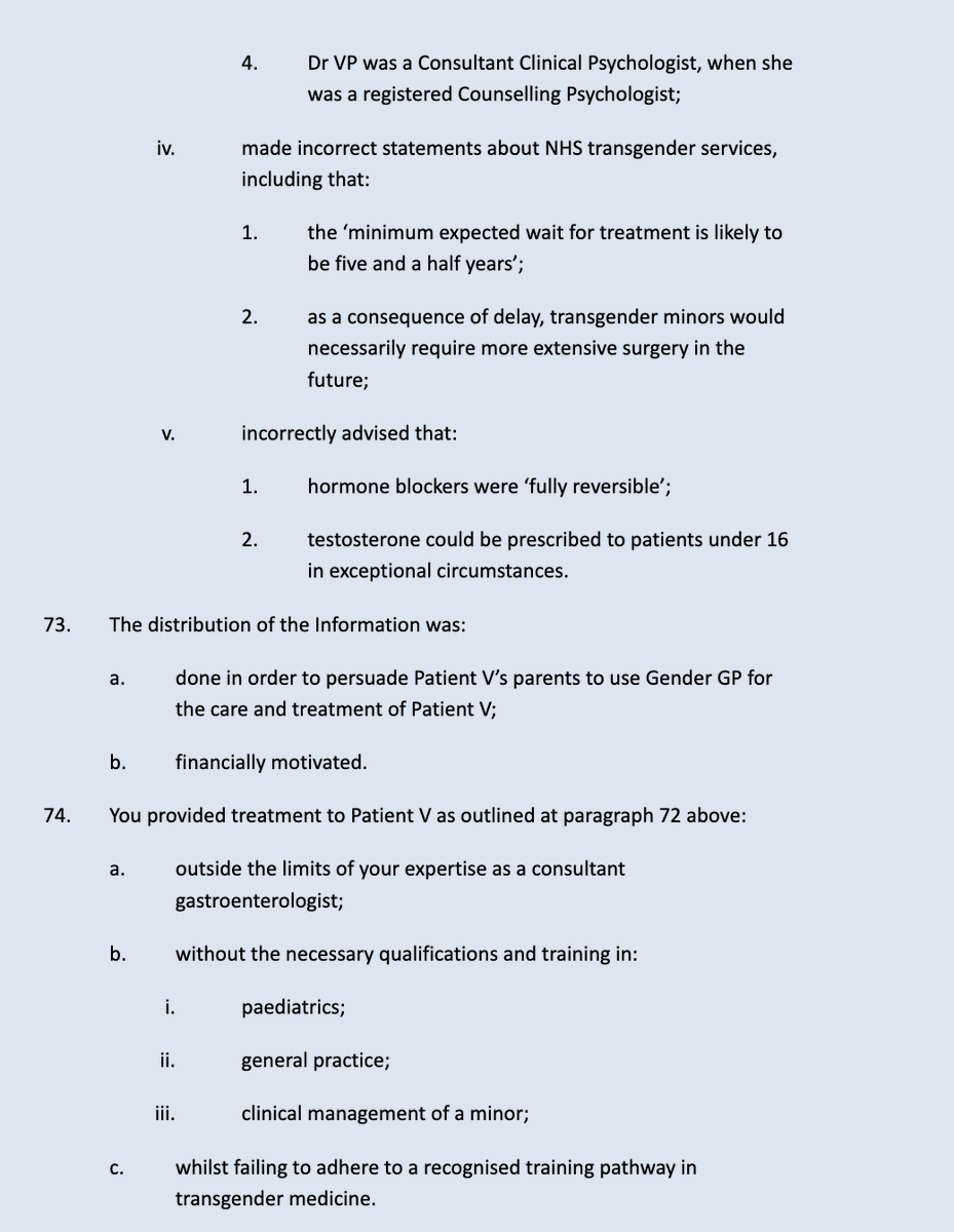 These are the allegations against Dr Michael Webberley in relation to Patient V: