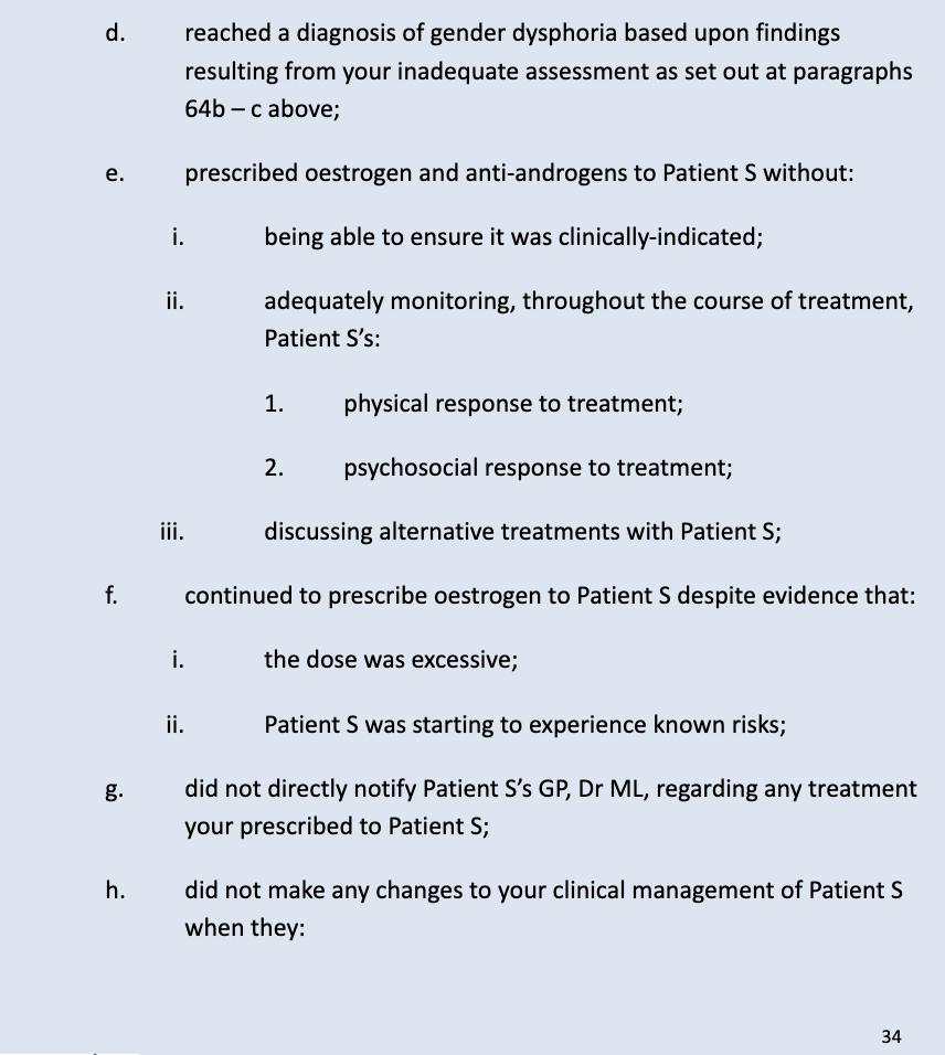 These are the allegations against Dr Michael Webberley in relation to Patient S: