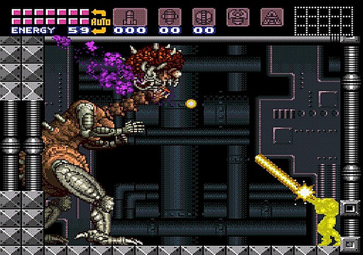 2) The boss fight is very standard but the sudden twist of a full body Mother brain fighting back and the baby Metroid saving you at the last minute, leaving behind the hyper beam and getting off the planet just in the nick of time is breath-taking