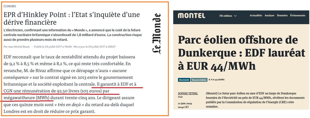 2. Cette formidable croissance s'explique par des coûts particulièrement bas ; on peut citer l'exemple de l'éolien offshore à Dunkerque à moins de 45 € le MWh alors que le nouveau nucléaire britannique est à plus de 100 euros !