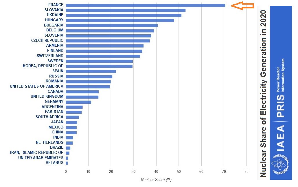 (si le nucléaire représente ~70% de l’électricité consommée en FR, l’électricité ne constitue en effet que 23% de l’énergie consommée),