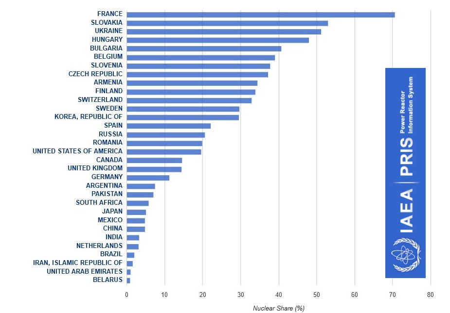 Ainsi, dans seulement vingt pays, la part d’électricité nucléaire dépasse les 10%. Un nombre stable depuis une vingtaine d’années.
