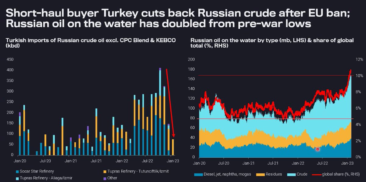 1/n Russia crude exports have been robust (including this January), flows have shifted considerably, China and India have fantastic bargaining power.