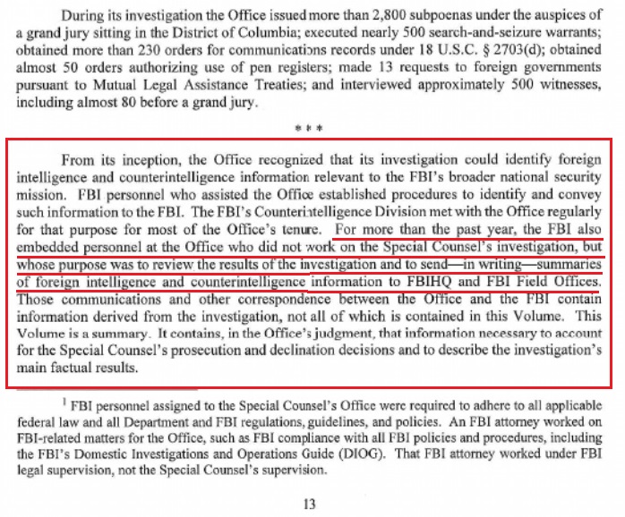 2) With 40 dedicated FBI agents working on a well known cover-up operation, think carefully about this segment in the Weissmann/Mueller report and what it means....