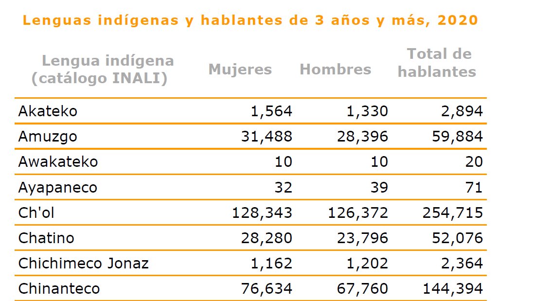 Esta reconexión o reclamo de una lengua parece darse en otras lenguas. El ixcateco (195), el oluteco (77) y el texistepequeño (368) también registraron aumentos de hablantes en el censo de 2020. Estas lenguas también han estado inmersas en algunas acciones de revitalización. 17/