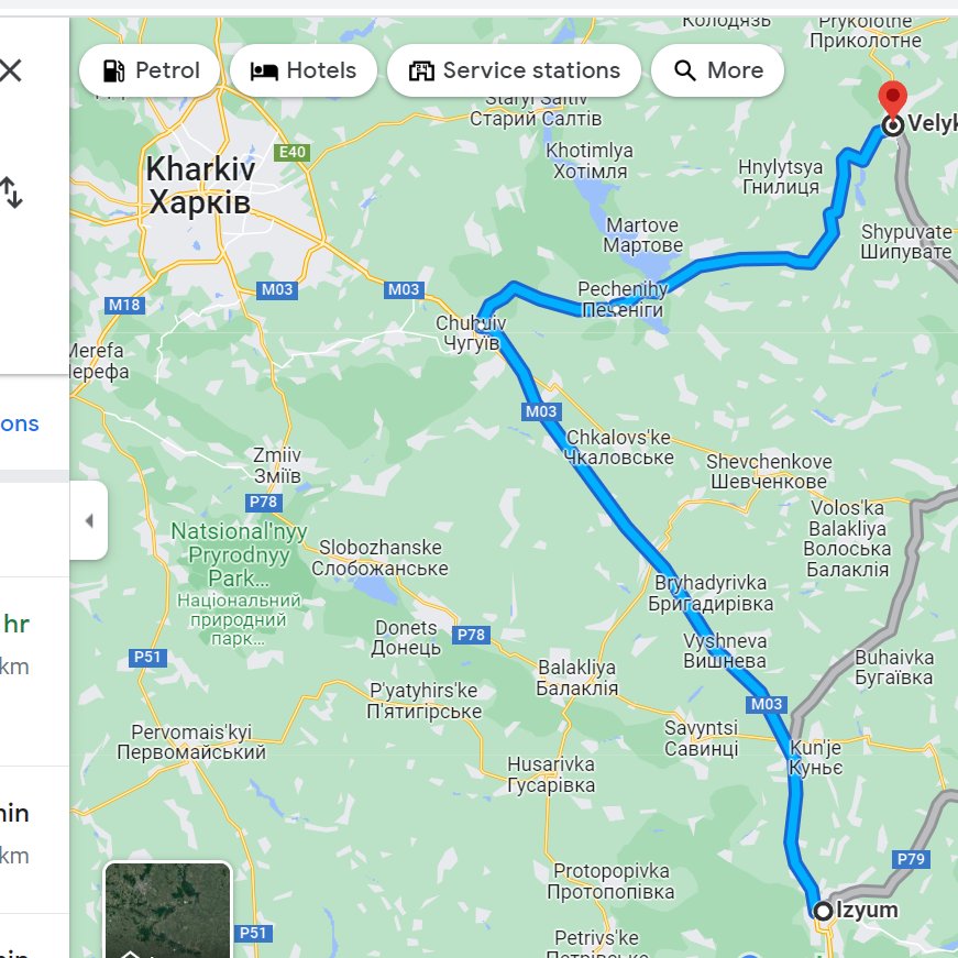 This is all delaying the build up of Russian forces for a Donbas assault--if these troops are still 153 KM from Izyum. Plenty of time for breakdowns, Ukrainian attacks. And even when the Russians get there, they will have to reorganize. `
