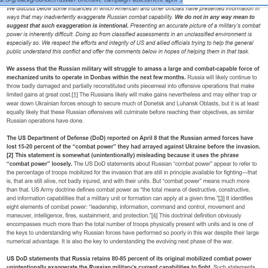 For the same of balance, here is an article arguing that the Russians will have learned a great deal in the war and will be able to build up the right force and do better in the Donbas. I don’t agree, but worth your time. theguardian.com/world/2022/apr…