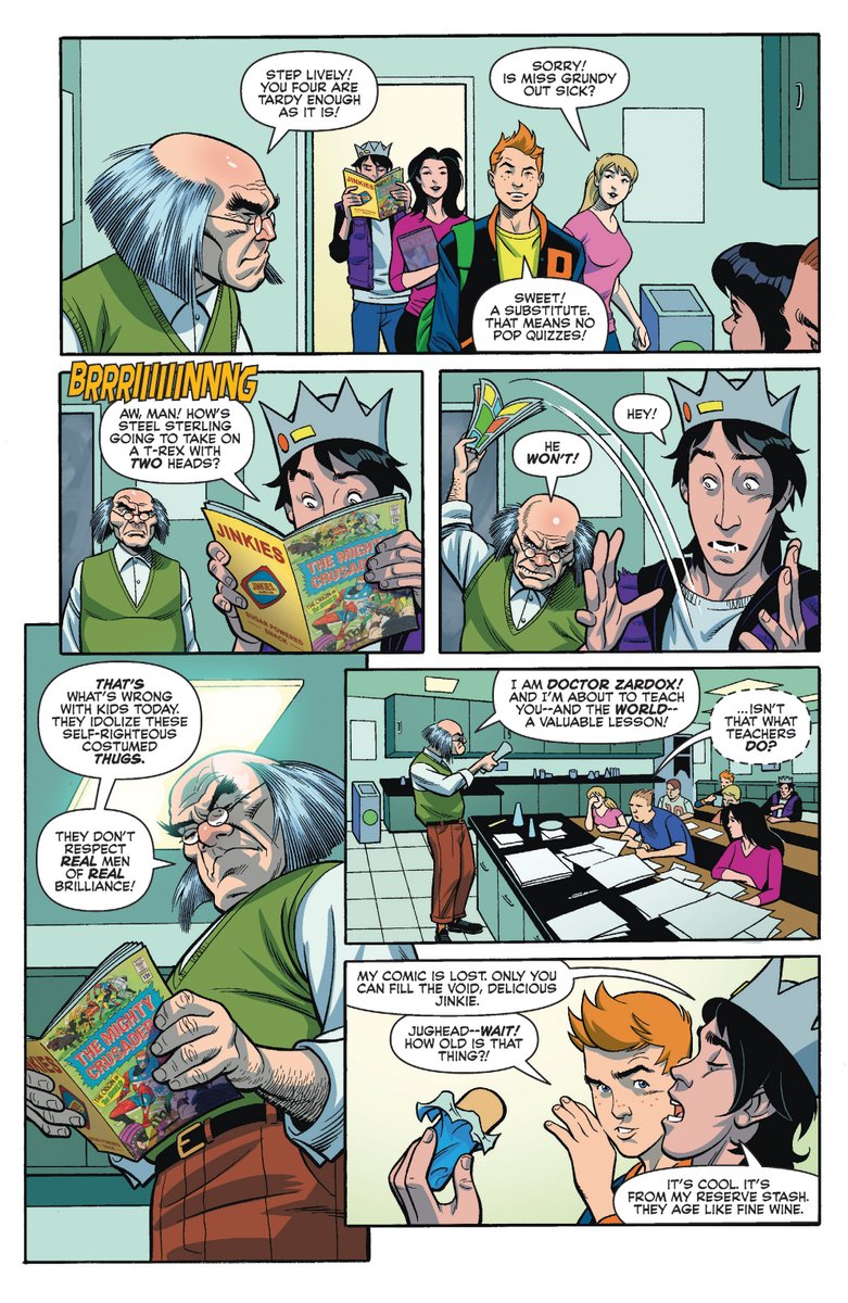 This series is much more in tone with the Archie's Weird Mysteries crossovers we covered last thread. Archie and the gang have a mean old science teacher who seems to really hate superheroes for some reason.