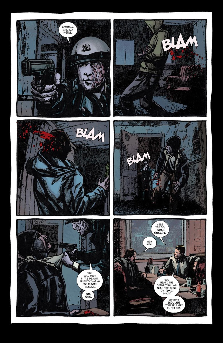 This is NOT a comic to give to your kid or even sensitive readers, folks. It has lots of f-bombs, graphic deaths, gritty and often stereotypical depictions of gang violence and generally reads like a TV show adaptation of a comic.