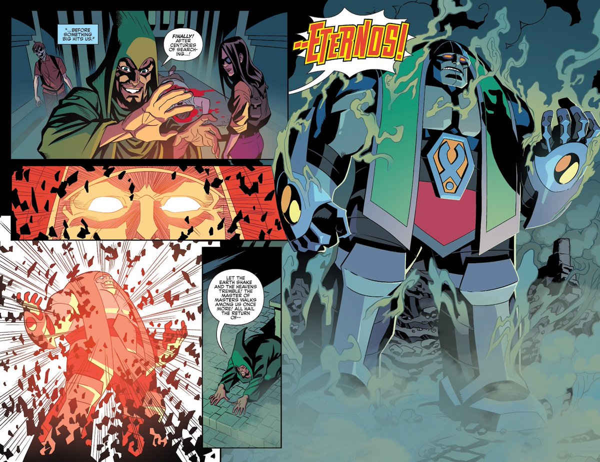 Meanwhile the Druid (that guy is everywhere!) resurrects Eterno the Conqueror... or is it Eternos? Unfortunately nothing ever comes of this story arc due to the abrupt cancellation of the title.