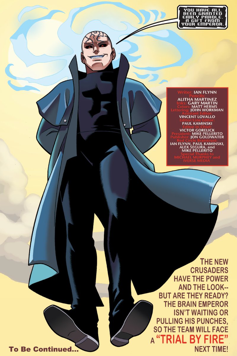 Flynn also uses the framing story with the adult kid sidekicks Roy and Dusty discussing the past to tie up a bunch of loose ends from previous runs, especially the bronze age stories. Turns out the Brain Emperor was behind everything!
