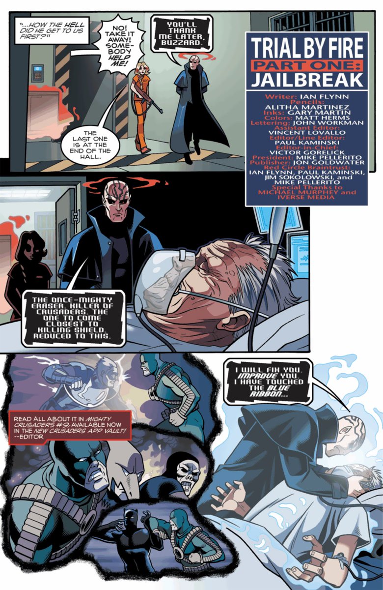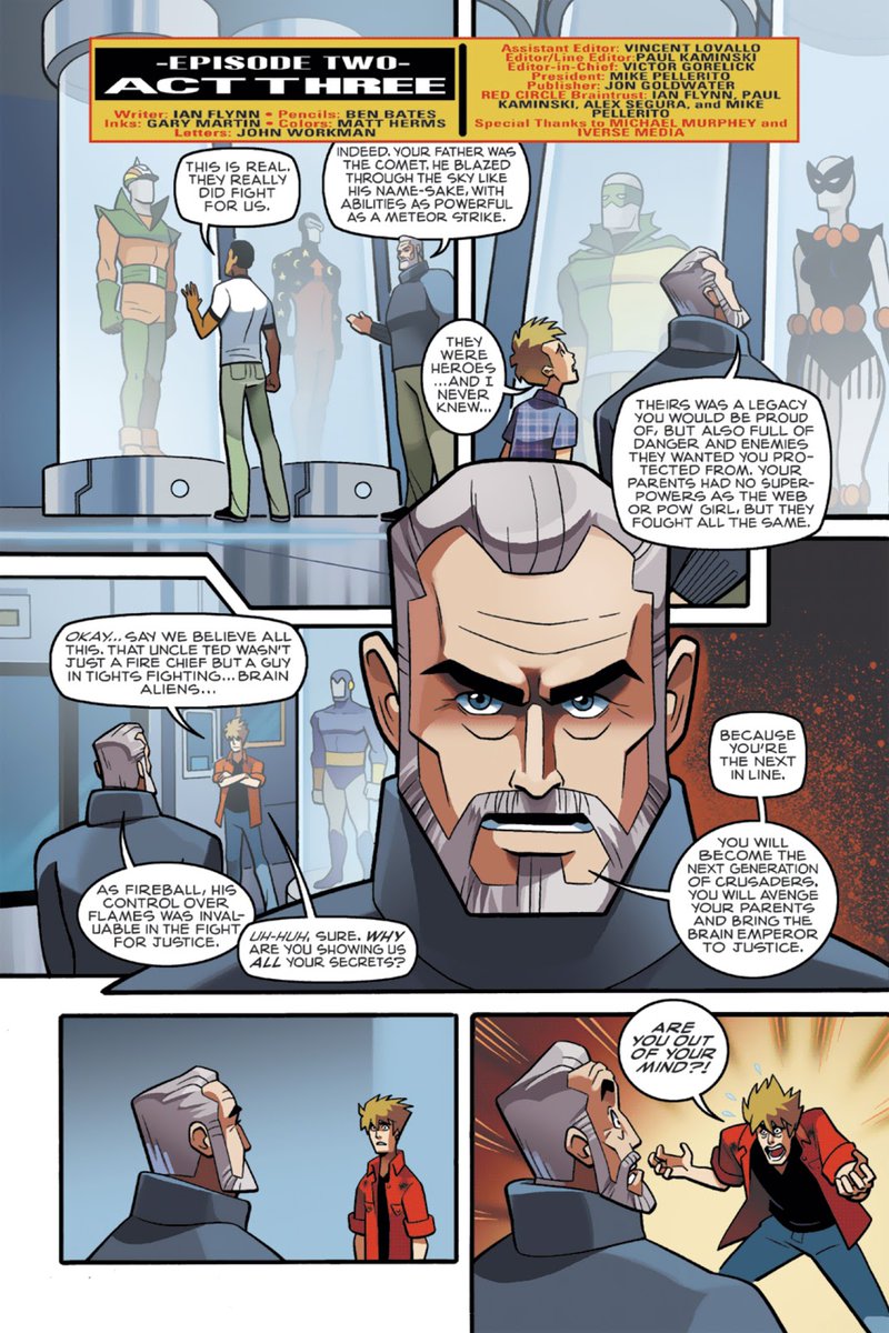 In late 2012 the first new comics of the reinvigorated Red Circle were available digitally, with the flagship being Ian Flynn and Ben Bates' New Crusaders. First available as a series of short chapters, the series was released physically and also had a trade release.