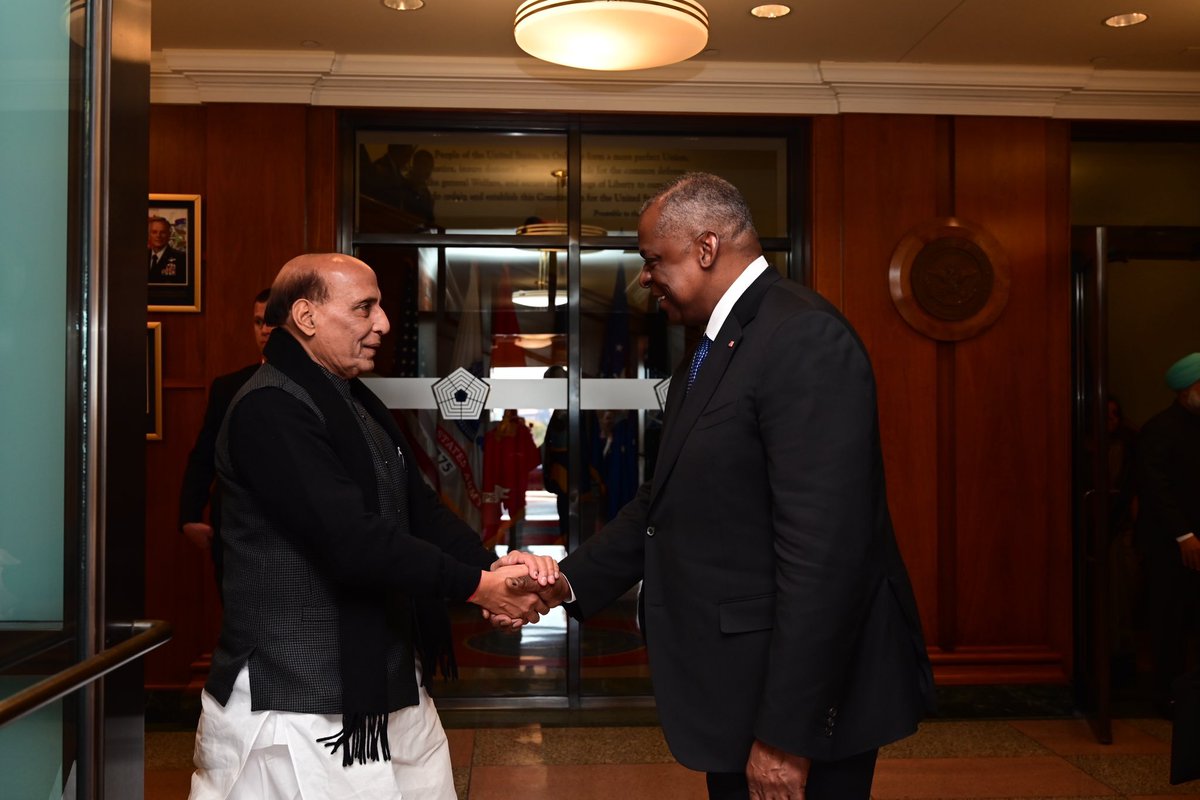 Had a wonderful meeting with the US Secretary of Defense Lloyd J. Austin III at the Pentagon today. We reviewed the entire gamut of bilateral defence cooperation and the regional security situation: Defence Minister Rajnath Singh