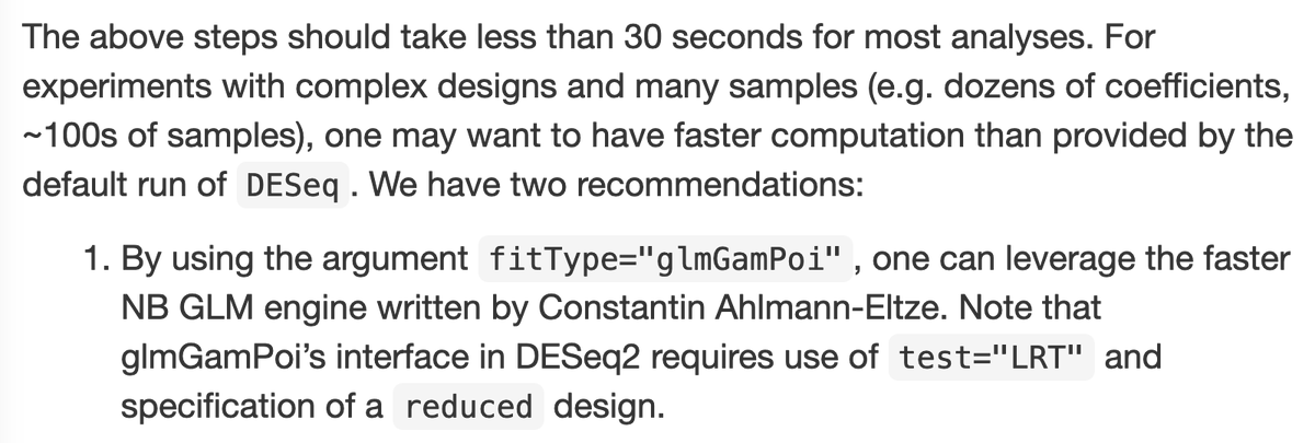 On computational speed on large datasets, want to mention the great work of @const_ae and @wolfgangkhuber to speed up NB GLM in DESeq2 often by an order of magnitude. Easily called from within DESeq2: