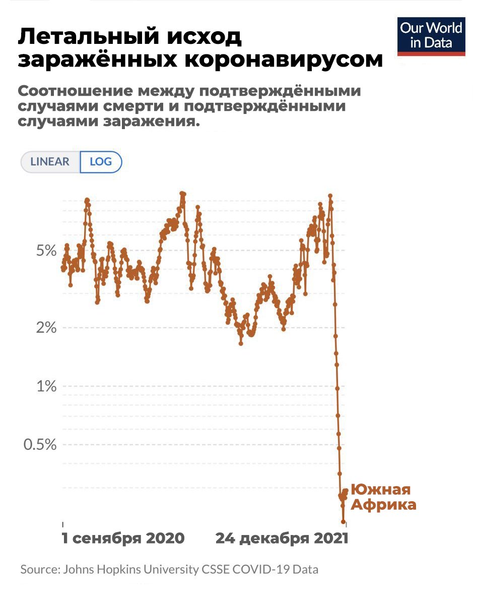 По всему миру распространился омикрон. Учёные дали ему название «живая вакцина»: после него количество смертей от коронавируса в Южной Африке сократилось в 10 раз.