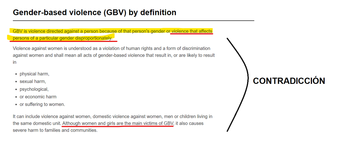 Bajo esta definición, los homicidios y las agresiones son GBV que sufren los hombres y que contradice que las mujeres sean las principales víctimas de GBV