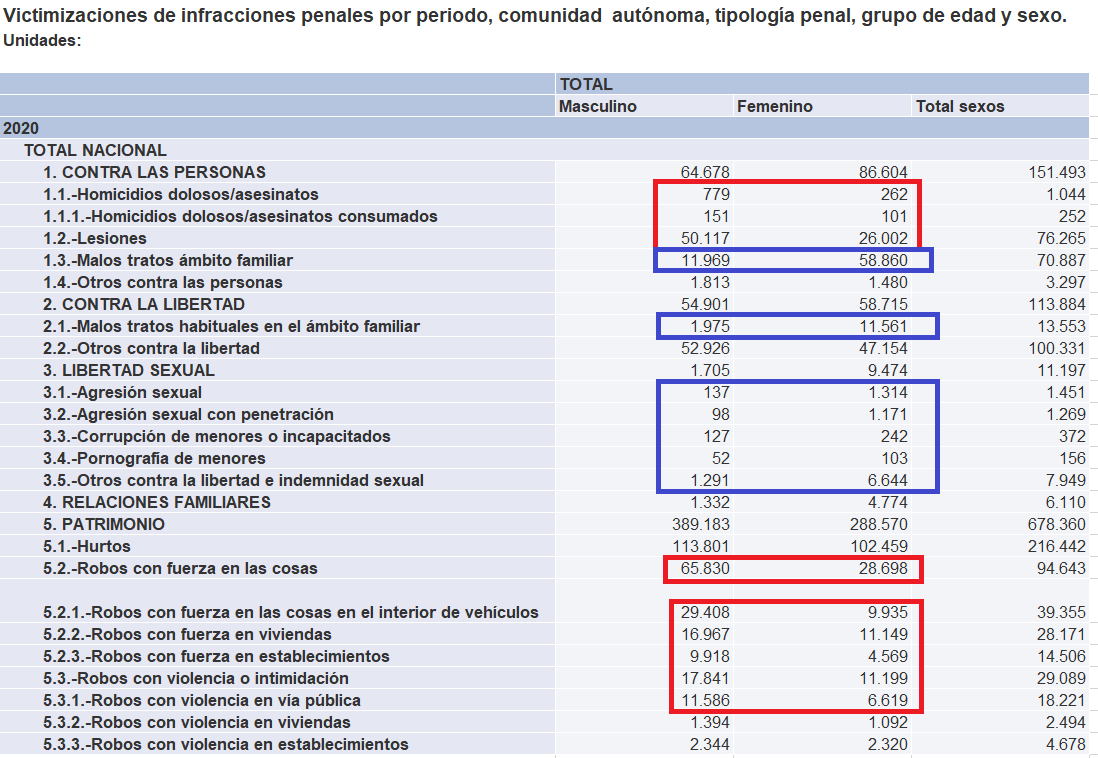 Gráfica de victimizaciones, esto no representa el total de delitos en España, sino los que han llegado al sistema judicial por denuncia.
