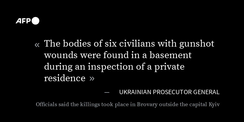 #BREAKING Six people found shot dead in basement outside Kyiv: Ukraine prosecutor