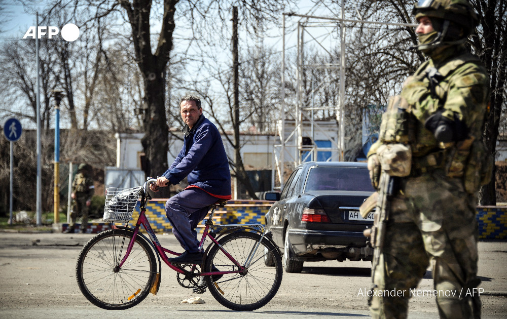 @AFP photographer Alexander Nemenov joins a media trip organized by the Russian military to see soldiers on patrol in Volnovakha in the self-proclaimed Donetsk People's Republic