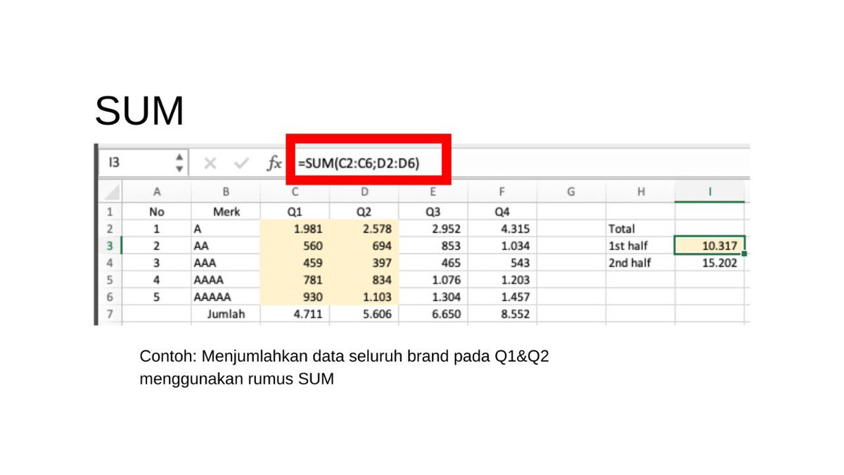Berfungsi untuk menjumlahkan sekumpulan angka dan bisa juga menjumlahkan kolom ke kolom.
