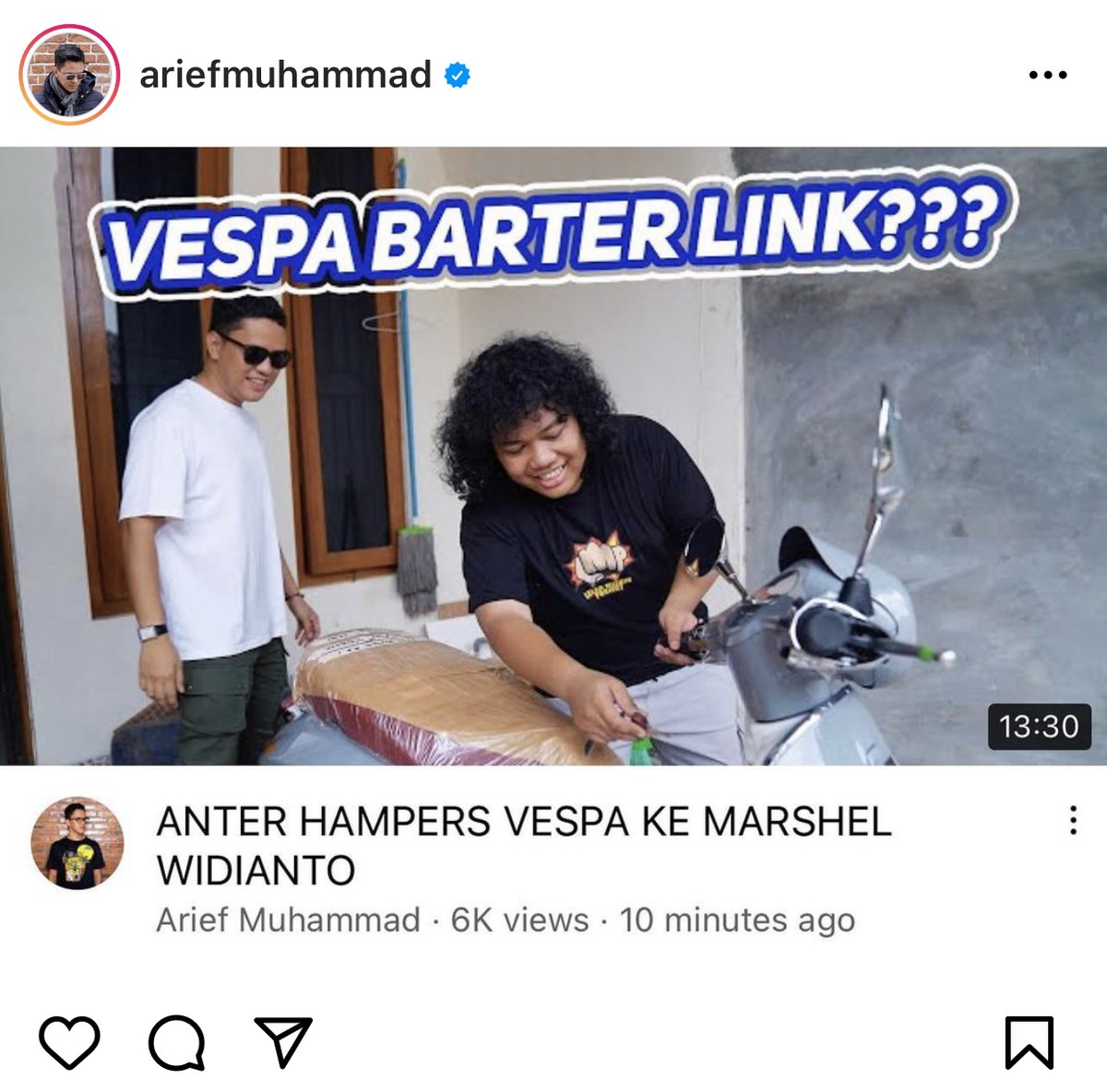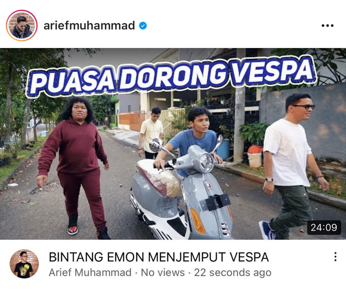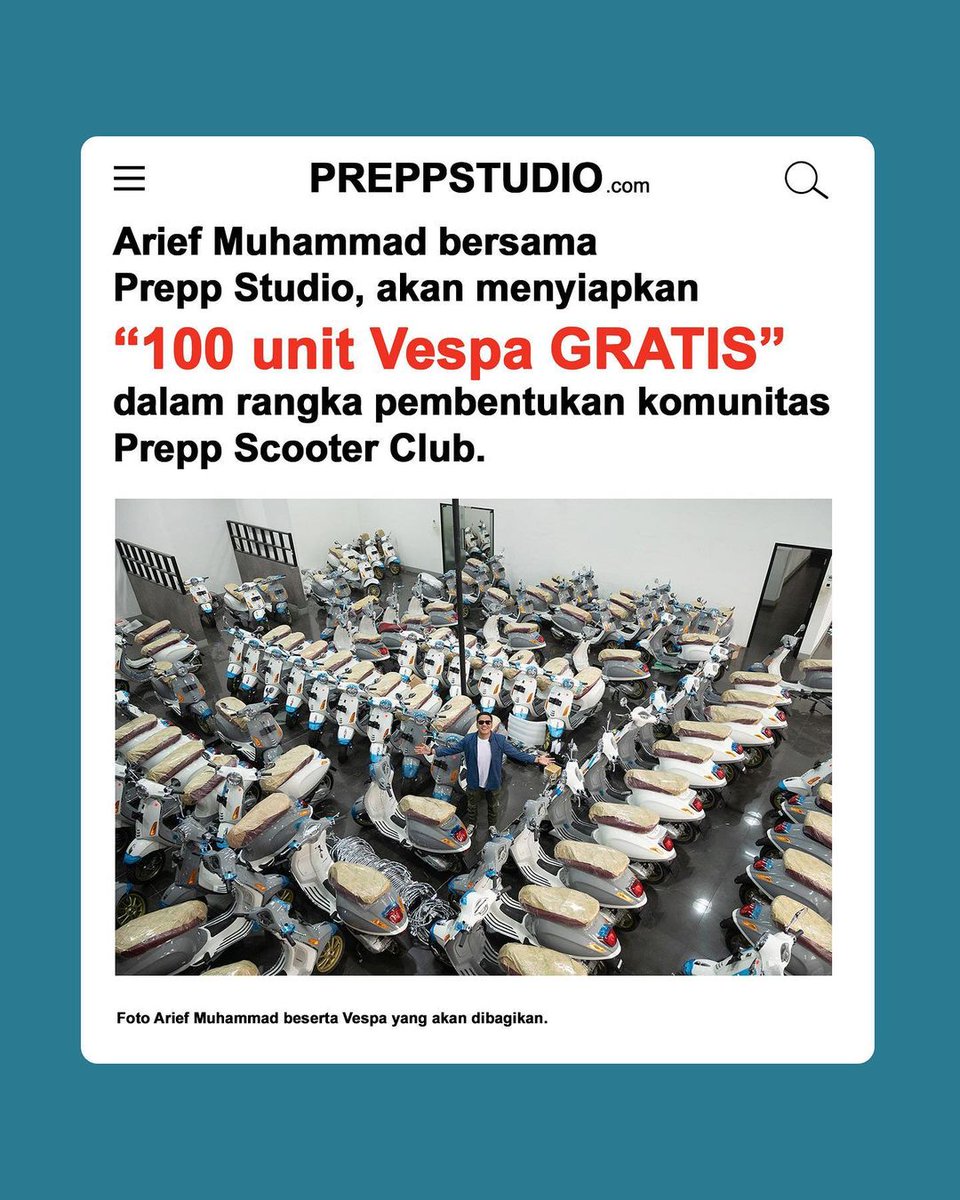 - 3 April: Ternyata Arief Muhammad kasih plot twist sedikit. Awalnya bilang mau give away 1 Vespa & dicancel.