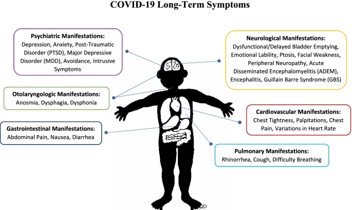 Em outra revisão sobre o assunto, os autores observaram uma série de possíveis manifestações relacionadas a COVID longa, que abrangem manifestações psiquiátricas, neurológicas, gastrointestinais, cardiovasculares e pulmonares, por ex. link.springer.com/article/10.100…