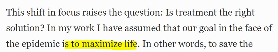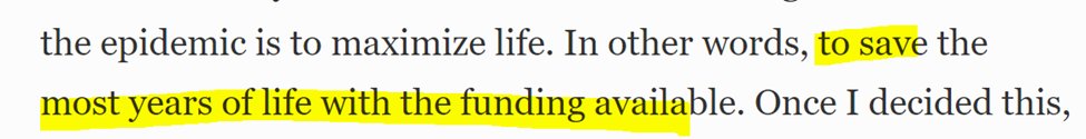 She tells us she hates to sound cruel, but numbers don’t lie: “Treatment is not an effective way to combat the epidemic.” With that, we have a new goal, “to combat the epidemic” which has nothing to do with years lived but with the number of infections.