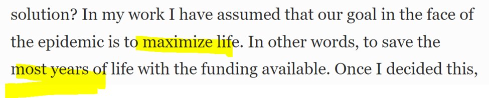 She then moves on to an unfortunate “In other words to save the most years of life”; unfortunate because it is not a rephrasing, but something else entirely.