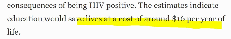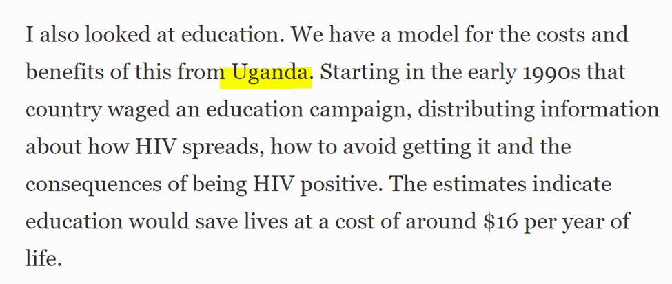 That doesn’t take into account the considerable bang-for-the-buck Uganda got by educating, not just about AIDS, but condom use and STDs. Those benefits are had for the same $16.00 investment. academic.oup.com/her/article/16…