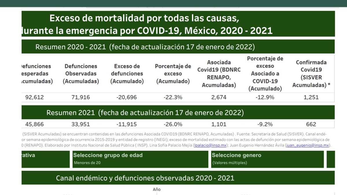 • 667,240 exceso de defunciones acumuladas 2020-2021