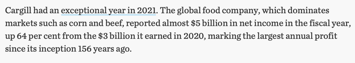 👉In 2021 Cargill saw it's largest annual profit in 156 yrs