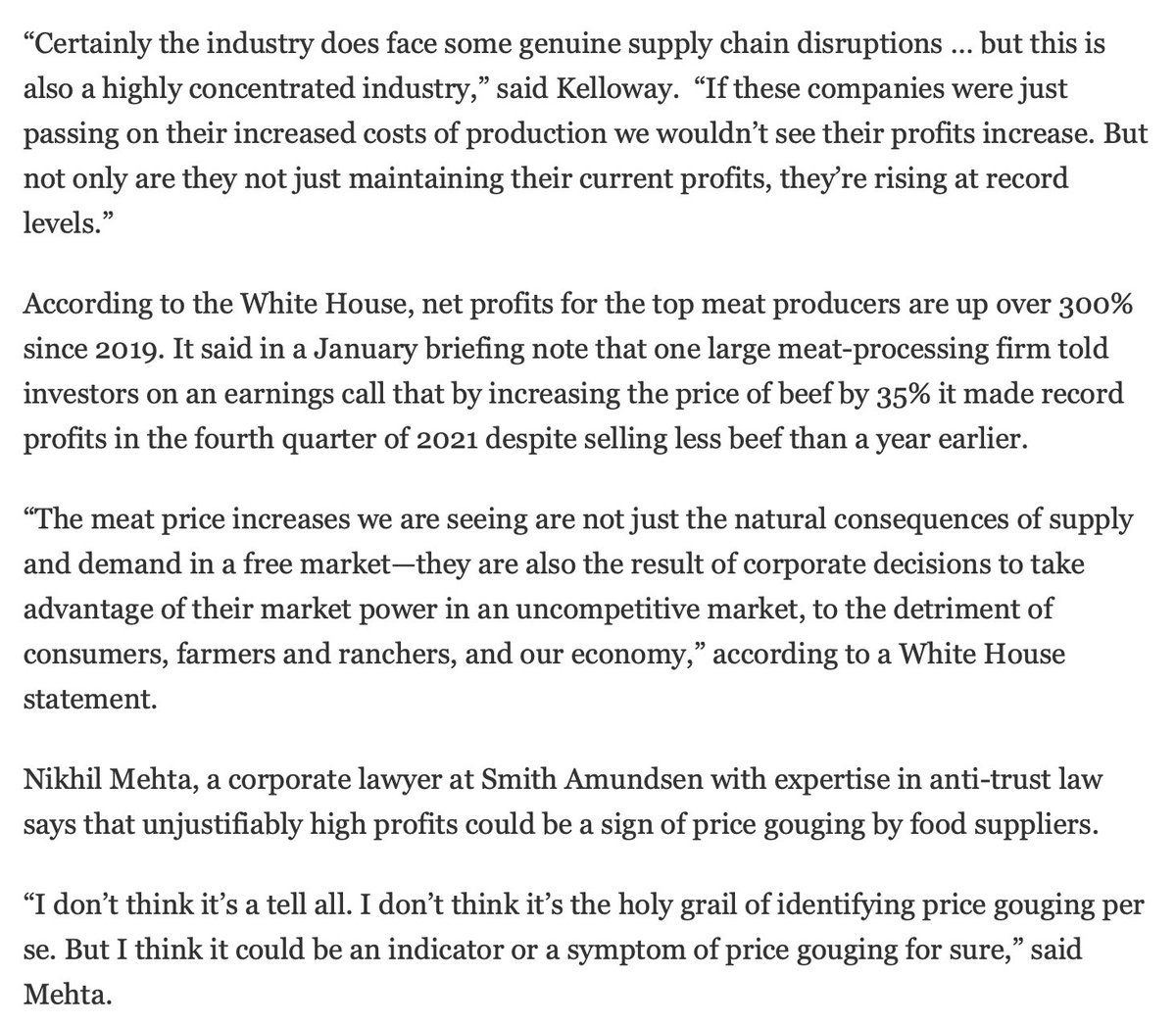 👉Biden's WH says top meat producers profits are up 300%+ since 2019