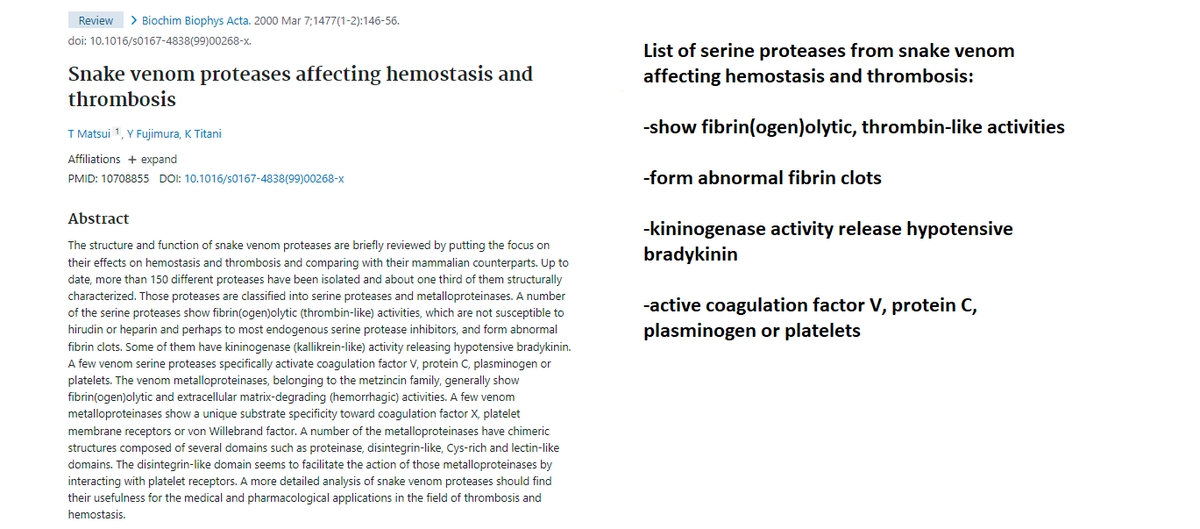 5/ Maybe there are people who believe that the clinical manifestation of severe COVID has some parallels to the severe toxicity of snake venom. The common denominator to both is role of serine protease in the pathology. But different reasons are involved - not protein homology.
